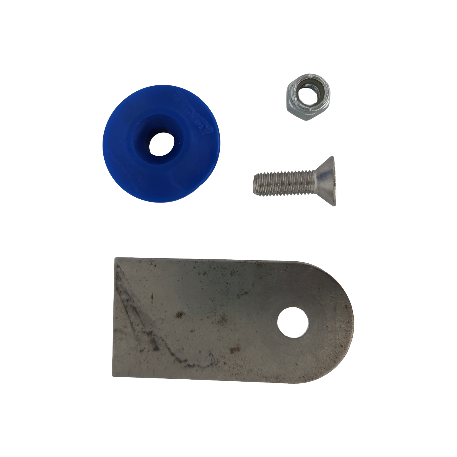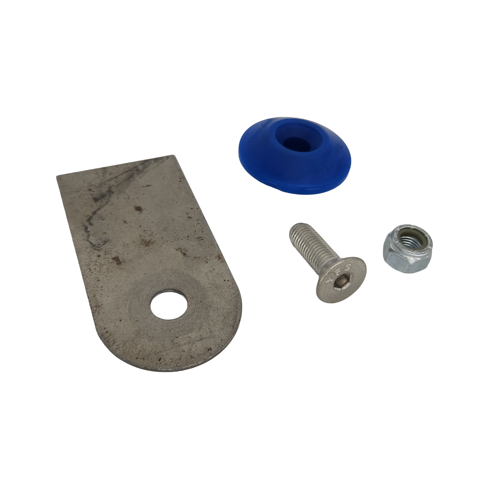 AutoFab's steel tab mount for body panels. Includes their blue bushing.