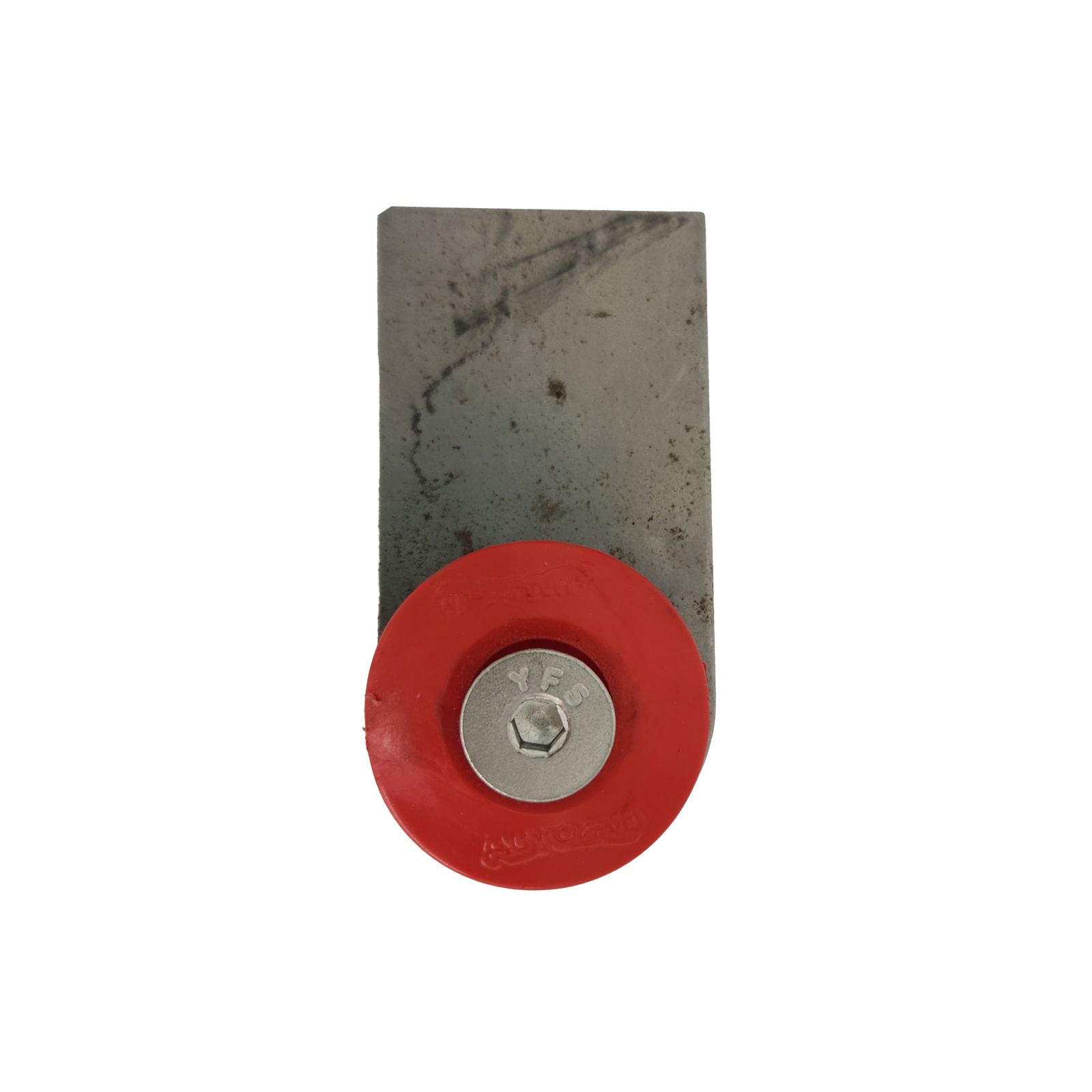 AutoFab's steel tab mount for body panels. Includes their red bushing.